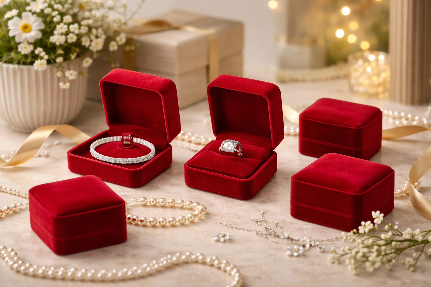 Cutie din catifea rosie pentru bratara cu suport, 9 x 9 x 5 cm