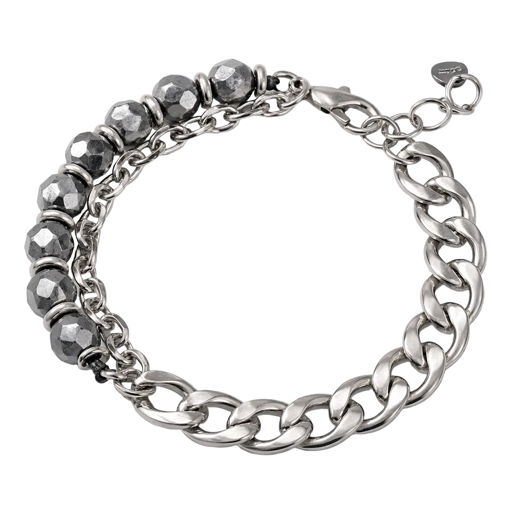 Brățară bărbătească cu design elegant, realizată din oțel inoxidabil și mărgele cu finisaj metalic. Un accesoriu discret, potrivit atât ținutelor casual, cât și celor elegante.